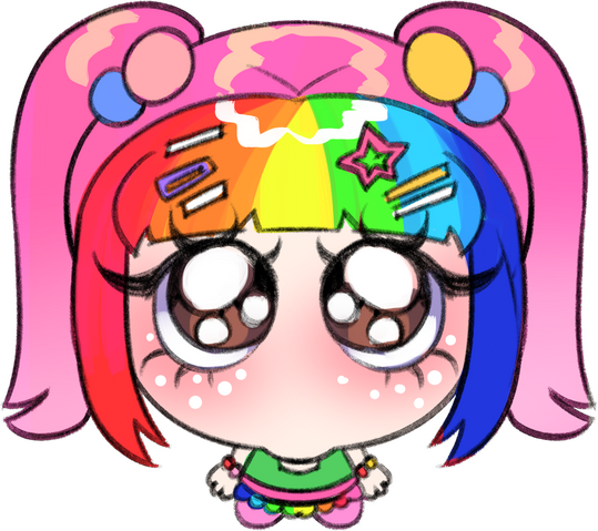 mary has an elusive presence online that contrasts greatly with their extremely colourful appearance and chatterbox personality irl! their art is just as eye-straining and silly! 🩷❤️🧡💛💚🩵💙💜